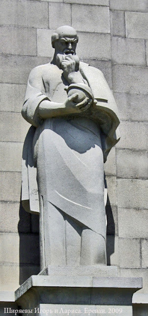 ученика Маштоца в скульптурной композиции при входе в Матенадаран